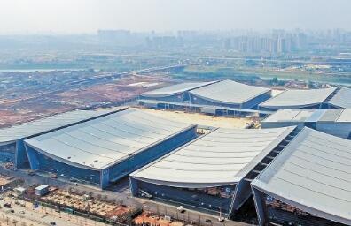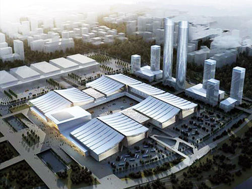 會(huì)展中心建筑設(shè)計(jì)平面共12個(gè)展館、2個(gè)登陸廳,總建筑面積約43.3萬(wàn)平方米,其中地上面積約30.1萬(wàn)平方米,室內(nèi)凈展示面積約17.75萬(wàn)平方米,室外凈展示面積約8.5萬(wàn)平方米,單個(gè)展廳面積約1.45萬(wàn)平方米;場(chǎng)館設(shè)置有小轎車停車位3100個(gè),大貨車(大巴)停車位550個(gè),非機(jī)動(dòng)車停車位3200個(gè);場(chǎng)館周邊還規(guī)劃了會(huì)議中心、賓館酒店、商務(wù)樓盤、地鐵及其他站場(chǎng)等各類服務(wù)功能設(shè)施。