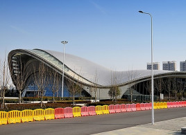 Hefei Binhu International Convention and Exhibition Center is a large public project jointly invested by Hefei People’s Government, Hefei Binhu New District Construction Investment Co.,Ltd and Hefei Key Engineering Construction Administration. Located in Binhu New Area, Hefei Binhu International Convention and Exhibition Center covers a land of 58.62 hectares, with a total construction area of about 332,800 square meters. The construction area of the first phase project is about 179,600 square meters, including a registration hall, a main exhibition hall and six standard exhibition halls, which can accommodate 4,600 standard booths in total. The indoor exhibition area is 91,000 square meters, the outdoor 15,500 square meters, the convention area 15,000 square meters and the usable area 2,100 square meters. The convention area houses several meeting halls or meeting rooms with seating capacities from 100 to 400 people and meeting halls which can accommodate 800 to 1200 people. The exhibition halls are equipped with a parking lot that can provide 1,000 stalls for cars and there are more than 4,000 temporary parking stalls on the ground. After the full completion of hall 1,2,3,4 of the second phase, the indoor exhibition area will reach 140,000 square meters, which can satisfy various exhibition needs.