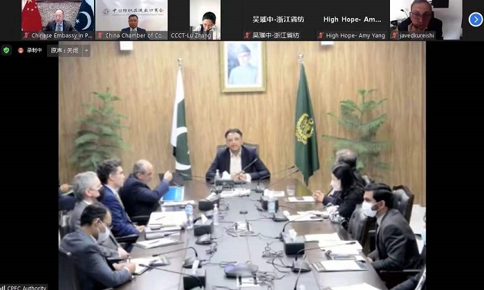 近日,中國-巴基斯坦紡織產業合作交流會在線上成功舉辦。本次交流會由中國紡織品進出口商會、中國駐巴基斯坦大使館、巴基斯坦計劃發展部、中巴經濟走廊事務局以及巴駐華使館聯合舉辦。巴基斯坦計劃發展部長阿薩德·烏邁爾、總理走廊事務特別助理哈立德·曼蘇爾、駐華大使莫因·哈克,中國紡織品進出口商會會長曹甲昌、中國駐巴基斯坦使館經商公參謝國祥出席并致辭,來自中巴雙方的紡織企業代表線上參會。